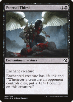 Enchant creature Enchanted creature has lifelink and "Whenever a creature an opponent controls dies, put a +1/+1 counter on this creature." (Damage dealt by a creature with lifelink also causes its controller to gain that much life.)