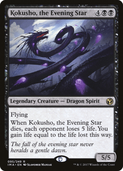 Flying When Kokusho dies, each opponent loses 5 life. You gain life equal to the life lost this way.