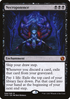 Skip your draw step. Whenever you discard a card, exile that card from your graveyard. Pay 1 life: Exile the top card of your library face down. Put that card into your hand at the beginning of your next end step.