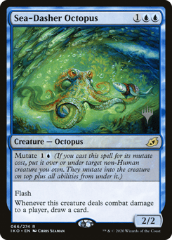 Mutate {1}{U} (If you cast this spell for its mutate cost, put it over or under target non-Human creature you own. They mutate into the creature on top plus all abilities from under it.) Flash Whenever this creature deals combat damage to a player, draw a card.