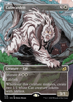 Mutate {2}{W}{W} (If you cast this spell for its mutate cost, put it over or under target non-Human creature you own. They mutate into the creature on top plus all abilities from under it.) Lifelink Whenever this creature mutates, create two 1/1 white Cat creature tokens with lifelink.