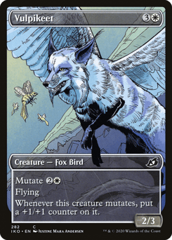 Mutate {3}{U} (If you cast this spell for its mutate cost, put it over or under target non-Human creature you own. They mutate into the creature on top plus all abilities from under it.) Flying Whenever this creature mutates, draw a card.