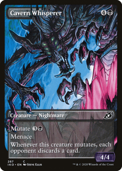 Mutate {3}{B} (If you cast this spell for its mutate cost, put it over or under target non-Human creature you own. They mutate into the creature on top plus all abilities from under it.) Menace (This creature can't be blocked except by two or more creatures.) Whenever this creature mutates, each opponent discards a card.