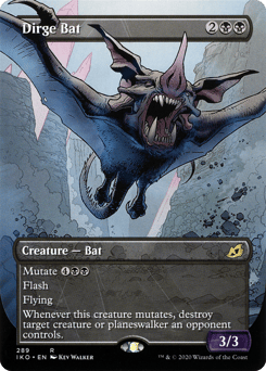 Mutate {4}{B}{B} (If you cast this spell for its mutate cost, put it over or under target non-Human creature you own. They mutate into the creature on top plus all abilities from under it.) Flash Flying Whenever this creature mutates, destroy target creature or planeswalker an opponent controls.