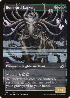 Mutate {2}{B/G}{B/G} (If you cast this spell for its mutate cost, put it over or under target non-Human creature you own. They mutate into the creature on top plus all abilities from under it.) Whenever this creature mutates, return target permanent card from your graveyard to your hand.