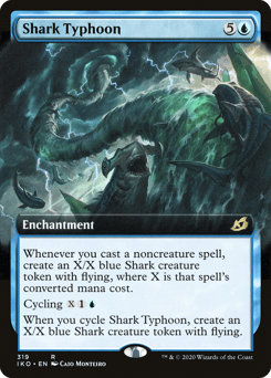 Whenever you cast a noncreature spell, create an X/X blue Shark creature token with flying, where X is that spell's mana value. Cycling {X}{1}{U} ({X}{1}{U}, Discard this card: Draw a card.) When you cycle this card, create an X/X blue Shark creature token with flying.