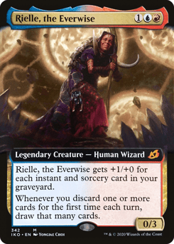 Rielle gets +1/+0 for each instant and sorcery card in your graveyard. Whenever you discard one or more cards for the first time each turn, draw that many cards.