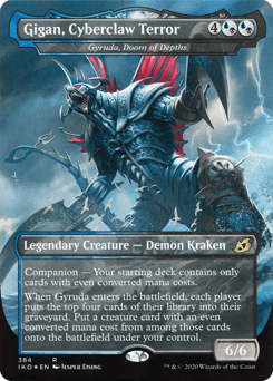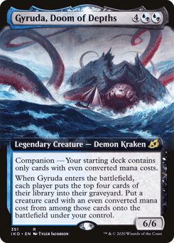 Companion — Your starting deck contains only cards with even mana values. (If this card is your chosen companion, you may put it into your hand from outside the game for {3} as a sorcery.) When Gyruda enters, each player mills four cards. Put a creature card with an even mana value from among the milled cards onto the battlefield under your control.