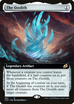 Whenever a creature you control leaves the battlefield, if it had counters on it, put those counters on The Ozolith. At the beginning of combat on your turn, if The Ozolith has counters on it, you may move all counters from The Ozolith onto target creature.