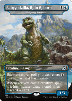 Mutate {2}{U/B}{G}{G} (If you cast this spell for its mutate cost, put it over or under target non-Human creature you own. They mutate into the creature on top plus all abilities from under it.) Trample You may cast this card from your graveyard using its mutate ability.