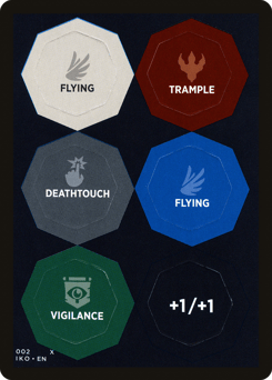 At the beginning of combat on your turn, choose a kind of counter at random that this creature doesn't have on it from among flying, first strike, deathtouch, hexproof, lifelink, menace, reach, trample, vigilance, and +1/+1. Put a counter of that kind on this creature.