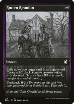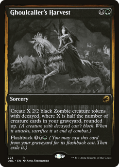 Exile up to one target card from a graveyard. Create a 2/2 black Zombie creature token with decayed. (It can't block. When it attacks, sacrifice it at end of combat.) Flashback {1}{B} (You may cast this card from your graveyard for its flashback cost. Then exile it.)