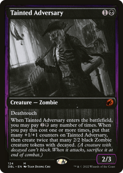 Deathtouch When this creature enters, you may pay {2}{B} any number of times. When you pay this cost one or more times, put that many +1/+1 counters on this creature, then create twice that many 2/2 black Zombie creature tokens with decayed. (A creature with decayed can't block. When it attacks, sacrifice it at end of combat.)