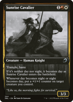 If it's neither day nor night, it becomes day as this creature enters. Whenever day becomes night or night becomes day, draw a card.