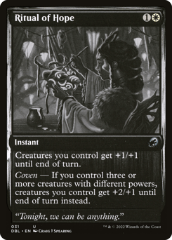 Creatures you control get +1/+1 until end of turn. Coven — If you control three or more creatures with different powers, creatures you control get +2/+1 until end of turn instead.