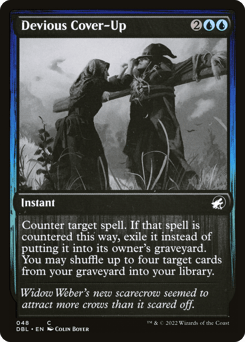 Counter target spell. If that spell is countered this way, exile it instead of putting it into its owner's graveyard. You may shuffle up to four target cards from your graveyard into your library.