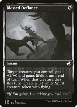 Target creature you control gets +2/+0 and gains lifelink until end of turn. When that creature dies this turn, create a 1/1 white Spirit creature token with flying.