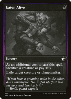 As an additional cost to cast this spell, sacrifice a creature or pay {3}{B}. Exile target creature or planeswalker.