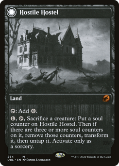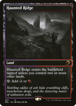 This land enters tapped unless you control two or more other lands. {T}: Add {B} or {R}.