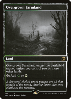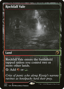 This land enters tapped unless you control two or more other lands. {T}: Add {R} or {G}.