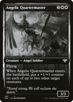 Flying When this creature enters, put a +1/+1 counter on each of up to two other target creatures.