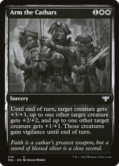 Until end of turn, target creature gets +3/+3, up to one other target creature gets +2/+2, and up to one other target creature gets +1/+1. Those creatures gain vigilance until end of turn.