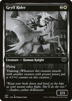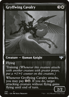 Flying Training (Whenever this creature attacks with another creature with greater power, put a +1/+1 counter on this creature.)