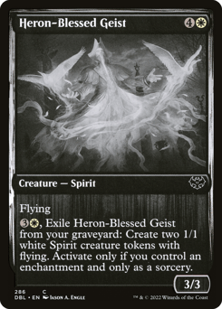 Flying {3}{W}, Exile this card from your graveyard: Create two 1/1 white Spirit creature tokens with flying. Activate only if you control an enchantment and only as a sorcery.