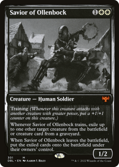 Training (Whenever this creature attacks with another creature with greater power, put a +1/+1 counter on this creature.) Whenever this creature trains, exile up to one other target creature from the battlefield or creature card from a graveyard. When this creature leaves the battlefield, put the exiled cards onto the battlefield under their owners' control.