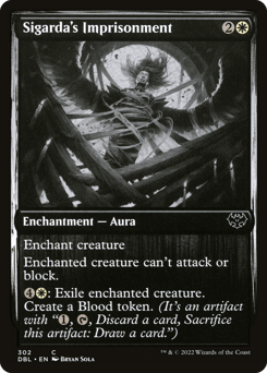 Enchant creature Enchanted creature can't attack or block. {4}{W}: Exile enchanted creature. Create a Blood token. (It's an artifact with "{1}, {T}, Discard a card, Sacrifice this token: Draw a card.")