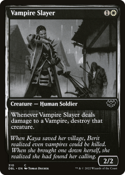 Whenever this creature deals damage to a Vampire, destroy that creature.