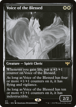 Whenever you gain life, put a +1/+1 counter on this creature. As long as this creature has four or more +1/+1 counters on it, it has flying and vigilance. As long as this creature has ten or more +1/+1 counters on it, it has indestructible.