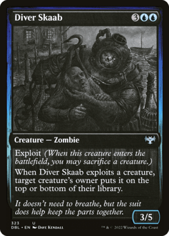 Exploit (When this creature enters, you may sacrifice a creature.) When this creature exploits a creature, scry 1, then draw a card. (To scry 1, look at the top card of your library, then you may put that card on the bottom.)