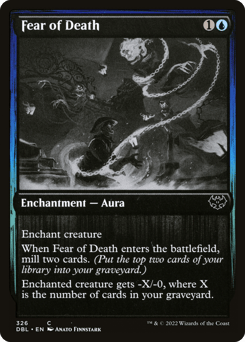 Enchant creature When this Aura enters, mill two cards. (Put the top two cards of your library into your graveyard.) Enchanted creature gets -X/-0, where X is the number of cards in your graveyard.
