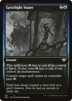 This spell costs {1} less to cast if you control a Spirit. It also costs {1} less to cast if you control an enchantment. Counter target spell unless its controller pays {3}.