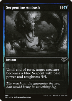 Until end of turn, target creature becomes a blue Serpent with base power and toughness 5/5.