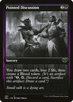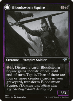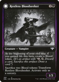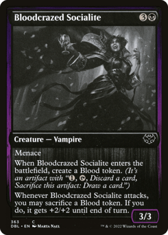 Menace When this creature enters, create a Blood token. (It's an artifact with "{1}, {T}, Discard a card, Sacrifice this token: Draw a card.") Whenever this creature attacks, you may sacrifice a Blood token. If you do, it gets +2/+2 until end of turn.