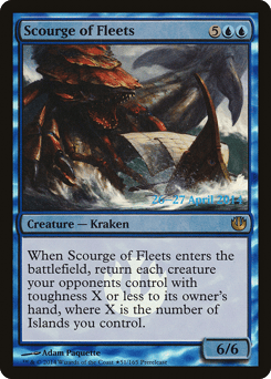 When this creature enters, return each creature your opponents control with toughness X or less to its owner's hand, where X is the number of Islands you control.