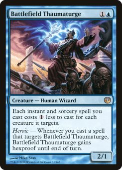 Each instant and sorcery spell you cast costs {1} less to cast for each creature it targets. Heroic — Whenever you cast a spell that targets this creature, this creature gains hexproof until end of turn.