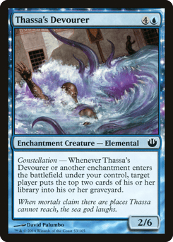 Constellation — Whenever this creature or another enchantment you control enters, target player mills two cards.