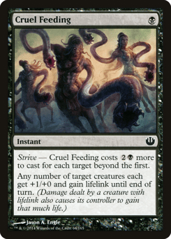 Strive — This spell costs {2}{B} more to cast for each target beyond the first. Any number of target creatures each get +1/+0 and gain lifelink until end of turn. (Damage dealt by a creature with lifelink also causes its controller to gain that much life.)