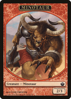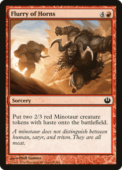 Create two 2/3 red Minotaur creature tokens with haste.
