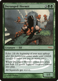 Echo {3}{G}{G} (At the beginning of your upkeep, if this came under your control since the beginning of your last upkeep, sacrifice it unless you pay its echo cost.) When this creature enters, create four 1/1 green Squirrel creature tokens. Squirrel creatures get +1/+1.