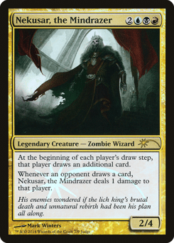 At the beginning of each player's draw step, that player draws an additional card. Whenever an opponent draws a card, Nekusar deals 1 damage to that player.