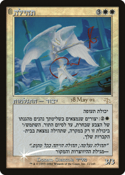 Flying {2}{W}: Choose a color. Creatures you control gain protection from the chosen color until end of turn. Activate only if this card is in your graveyard.