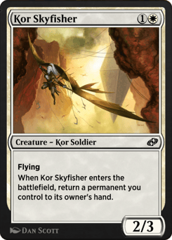 Flying When this creature enters, return a permanent you control to its owner's hand.