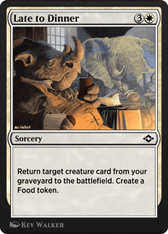 Return target creature card from your graveyard to the battlefield. Create a Food token. (It's an artifact with "{2}, {T}, Sacrifice this token: You gain 3 life.")