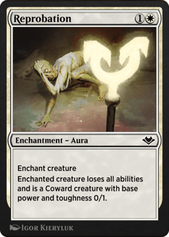 Enchant creature Enchanted creature loses all abilities and is a Coward creature with base power and toughness 0/1. (It keeps all supertypes but loses all other types and creature types.)
