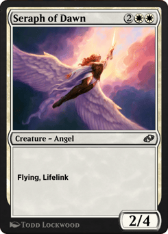 Flying, lifelink At the beginning of each combat, if you have more life than an opponent, this creature gains double strike until end of turn.