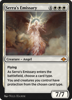 Flying As this creature enters, choose a card type. You and creatures you control have protection from the chosen card type.